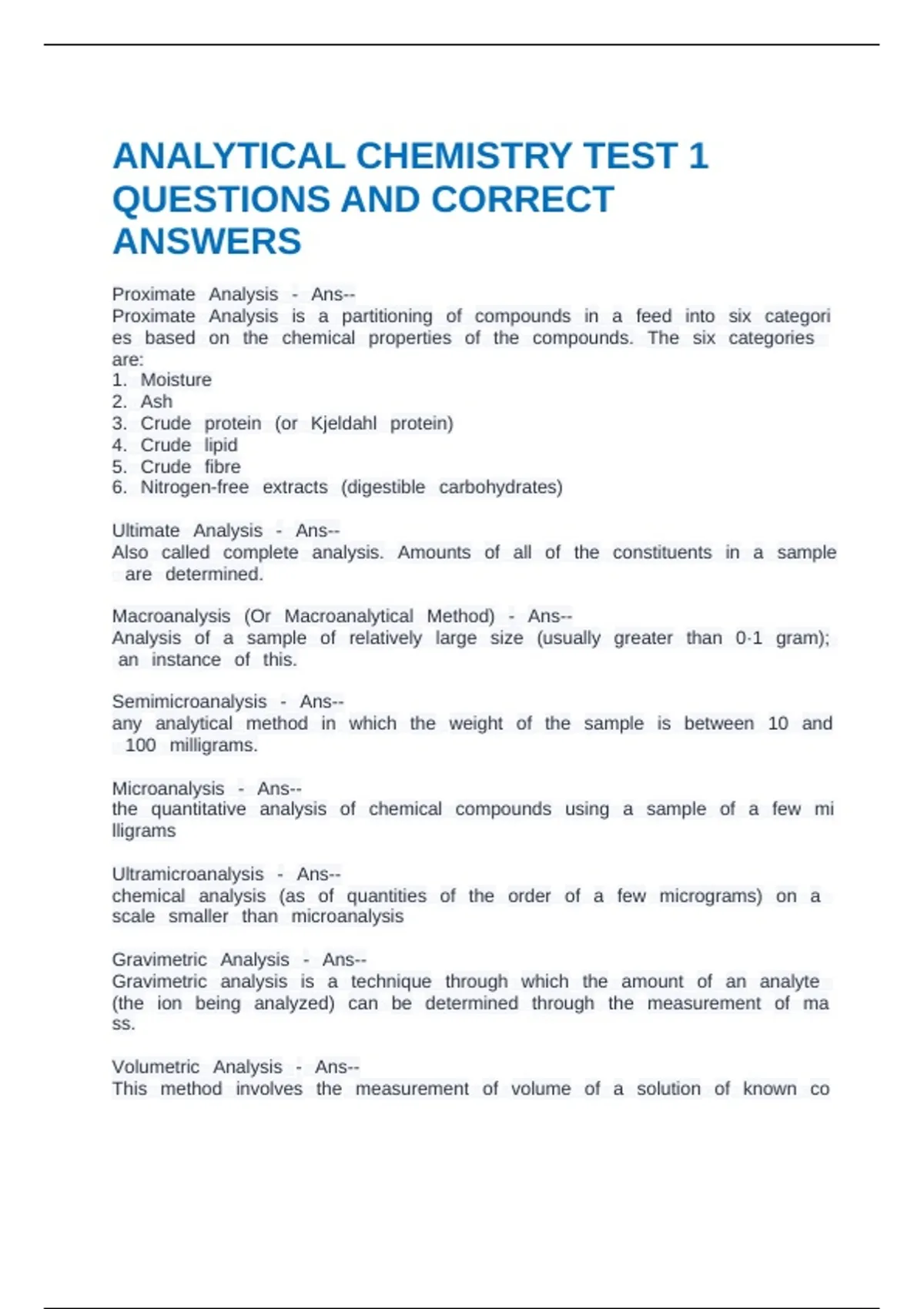 ANALYTICAL CHEMISTRY TEST 1 QUESTIONS AND CORRECT ANSWERS