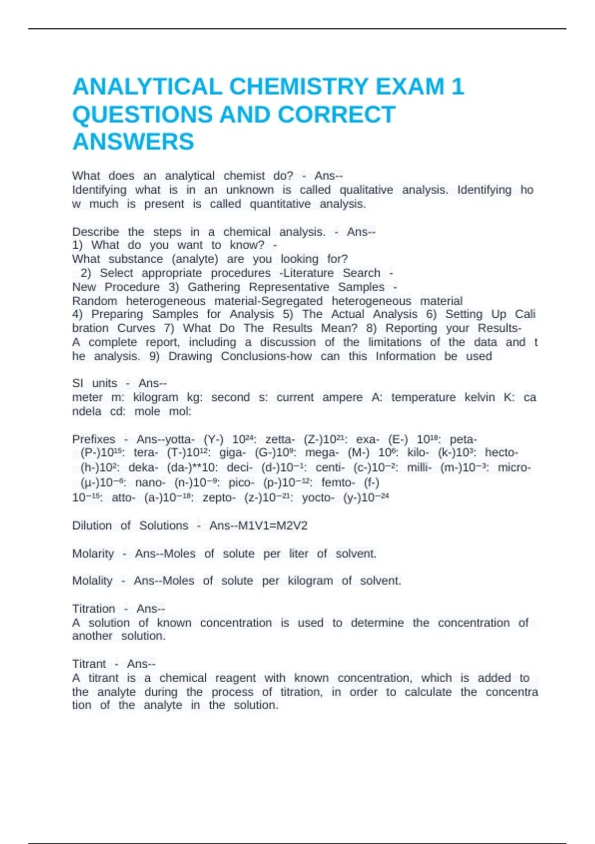 ANALYTICAL CHEMISTRY EXAM 1 QUESTIONS AND CORRECT ANSWERS