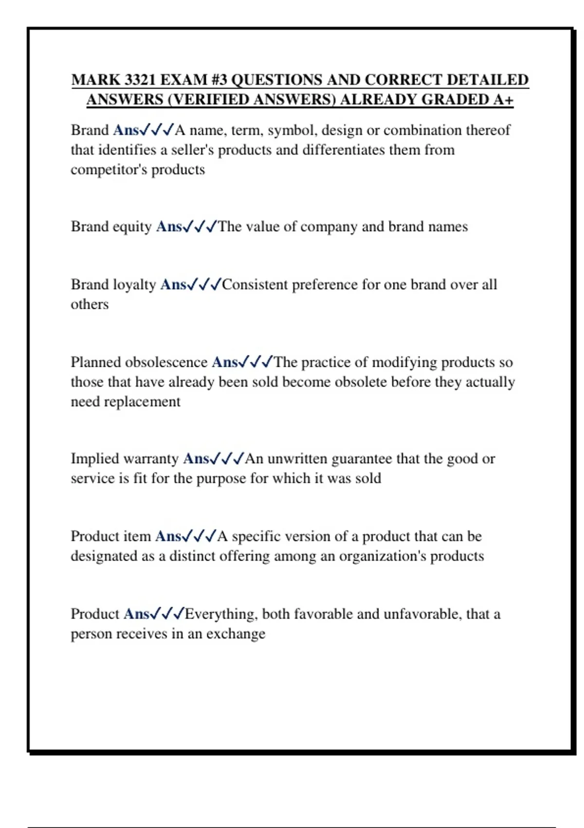MARK 3321 EXAM #3 QUESTIONS AND CORRECT DETAILED ANSWERS (VERIFIED ANSWERS) ALREADY GRADED A+