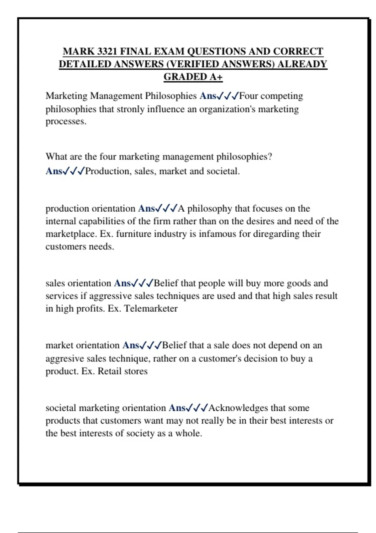 MARK 3321 FINAL EXAM QUESTIONS AND CORRECT DETAILED ANSWERS (VERIFIED ANSWERS) ALREADY GRADED A+