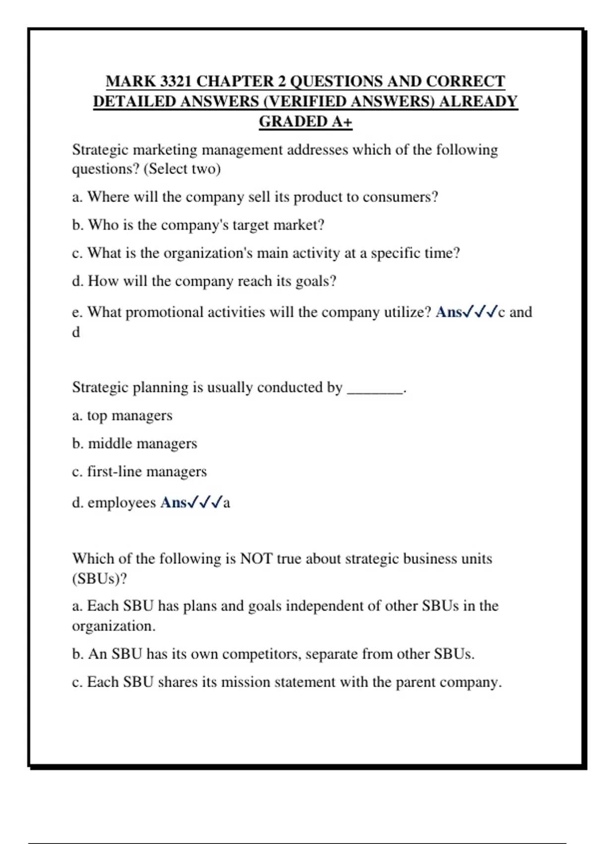 MARK 3321 CHAPTER 2 QUESTIONS AND CORRECT DETAILED ANSWERS (VERIFIED ANSWERS) ALREADY GRADED A+