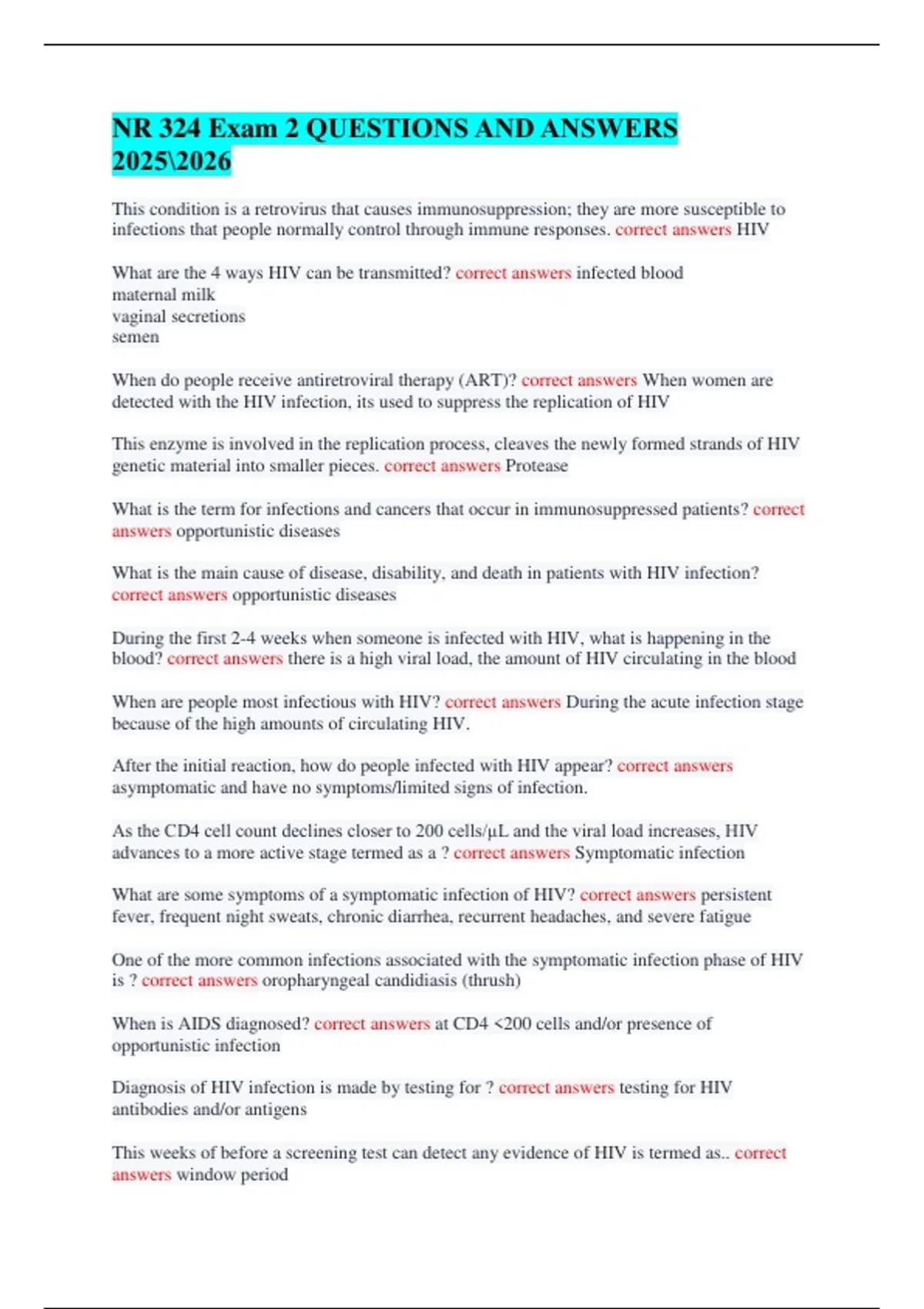 Diagnosis of HIV infection is made by testing for ? correct answers testing for HIV