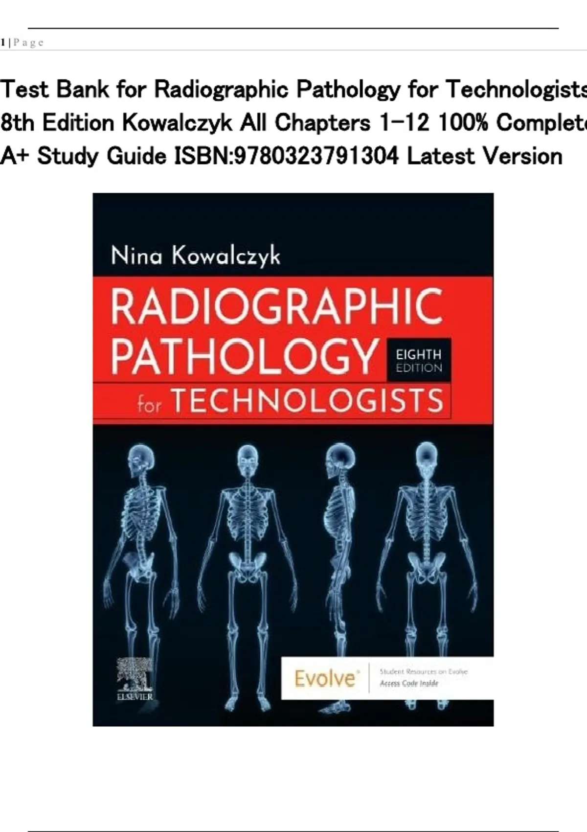 Test Bank for Radiographic Pathology for Technologists 8th Edition Kowalczyk All Chapters 1-12 100% Complete A+ Study Guide ISBN:9780323791304 Latest Version