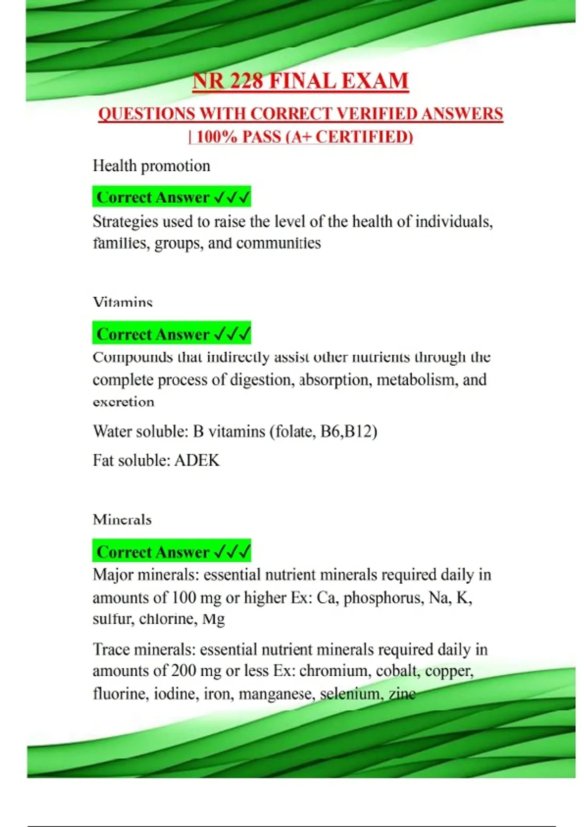 NR 228 FINAL EXAM QUESTIONS WITH CORRECT VERIFIED ANSWERS | 100% PASS (A+ CERTIFIED