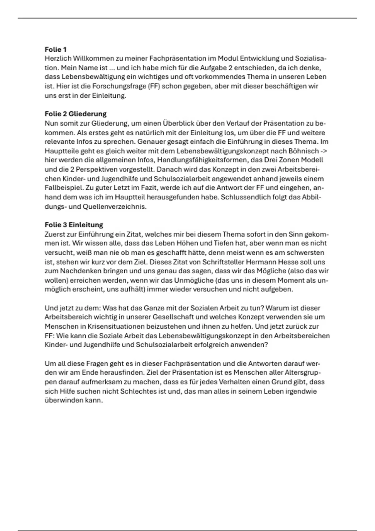 Dieses Dokument enthält den kompletten Sprechtext zur Präsentation im Modul Entwicklung und Sozialisation (DLBSAEUS01). Der Text deckt jede Folie der Präsentation ab und ist ideal als Orientierung oder Vorbereitung für die eigene Fachpräsentation. (Note: 1,0)