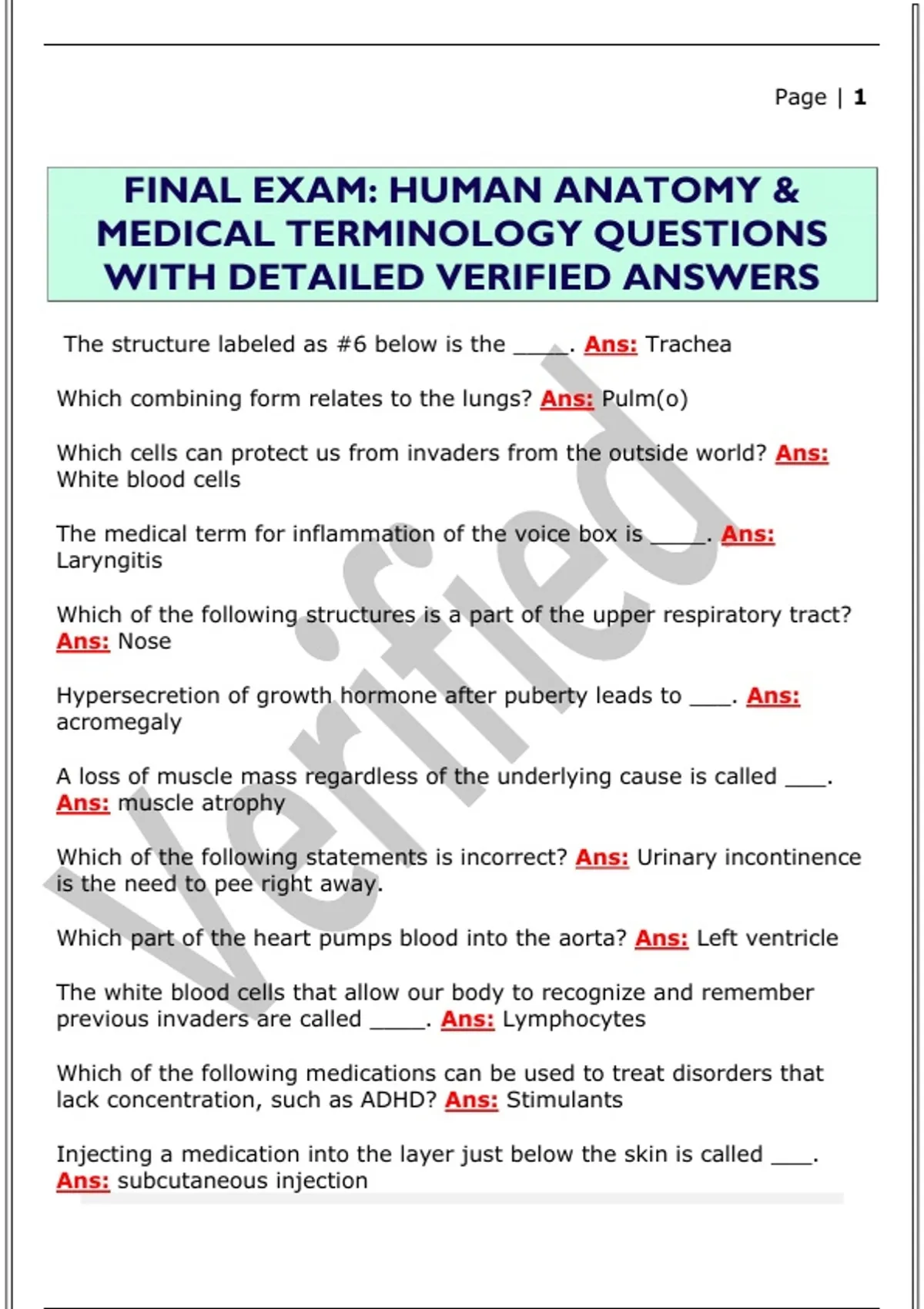 FINAL EXAM: HUMAN ANATOMY & MEDICAL TERMINOLOGY QUESTIONS WITH DETAILED VERIFIED ANSWERS