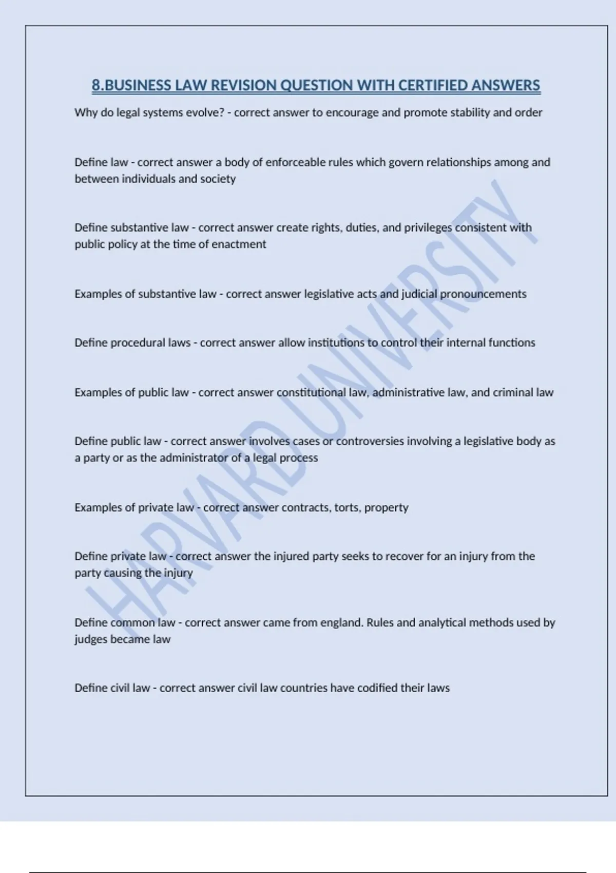 8.BUSINESS LAW REVISION QUESTION WITH CERTIFIED ANSWERS