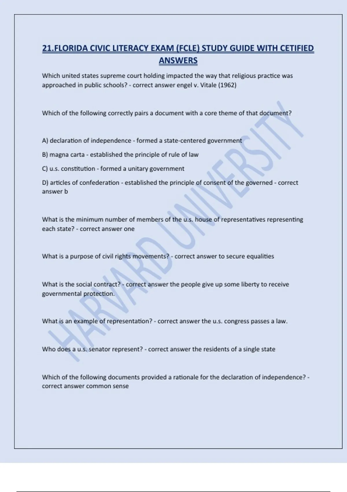 21.FLORIDA CIVIC LITERACY EXAM (FCLE) STUDY GUIDE WITH CETIFIED