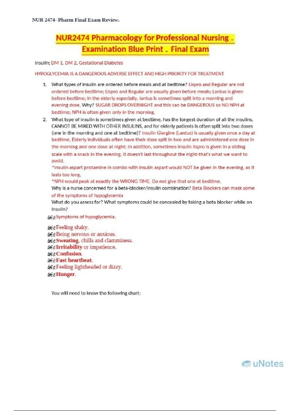NUR2474 Pharmacology for Professional Nursing Examination Blue Print - Final Exam