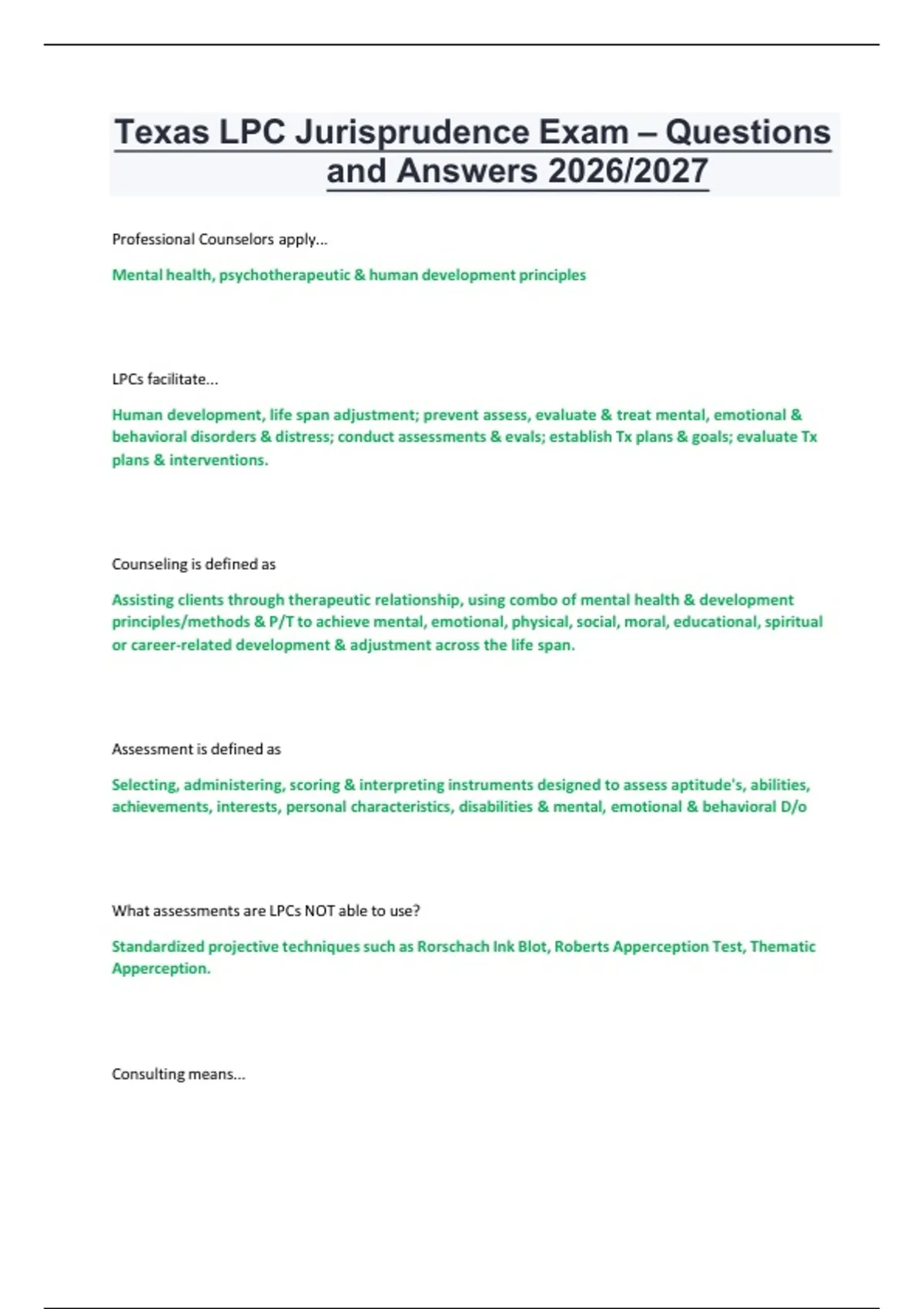 and Answers 2026/2027