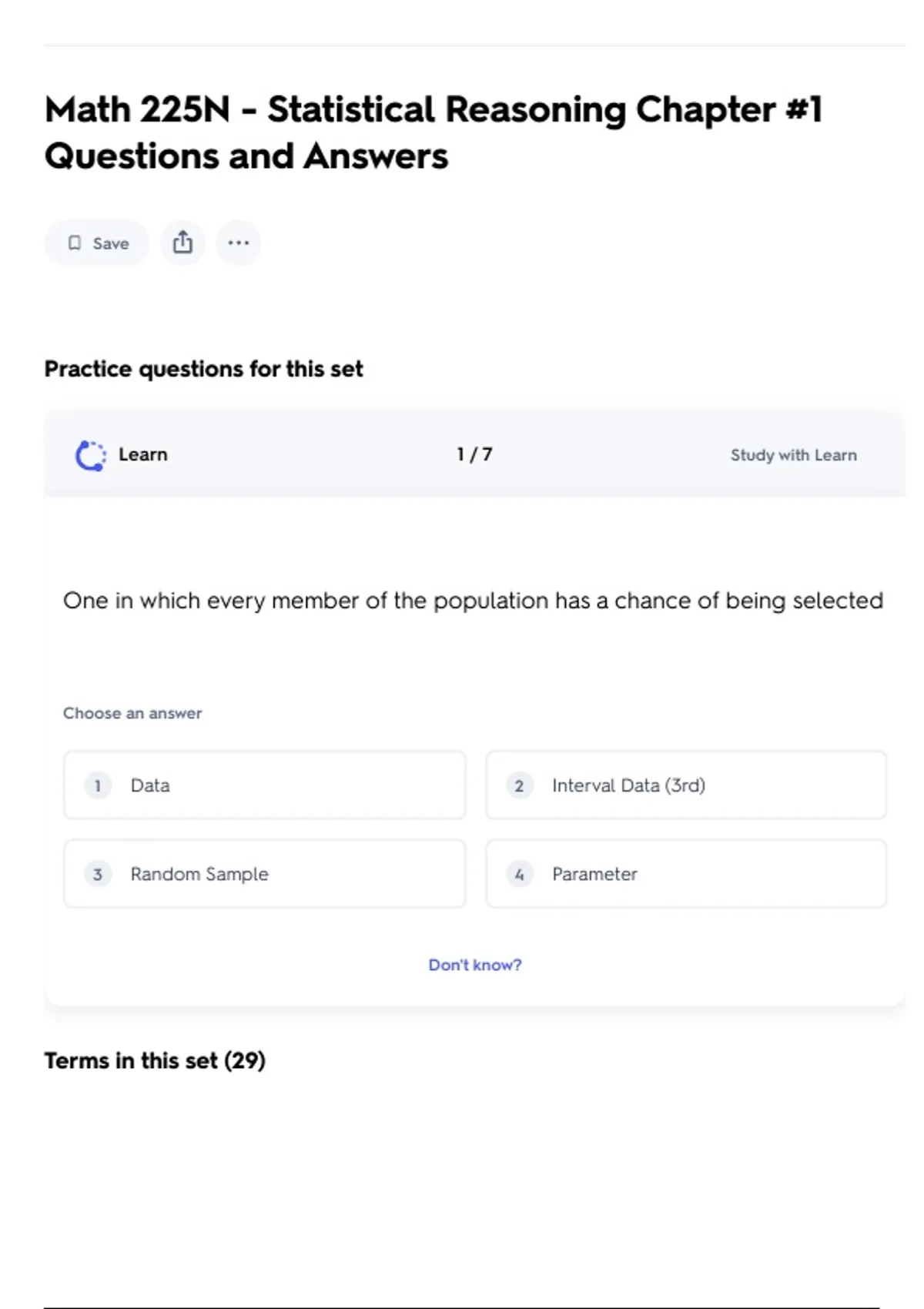 Math 225N - Statistical Reasoning Chapter #1 Questions and Answers