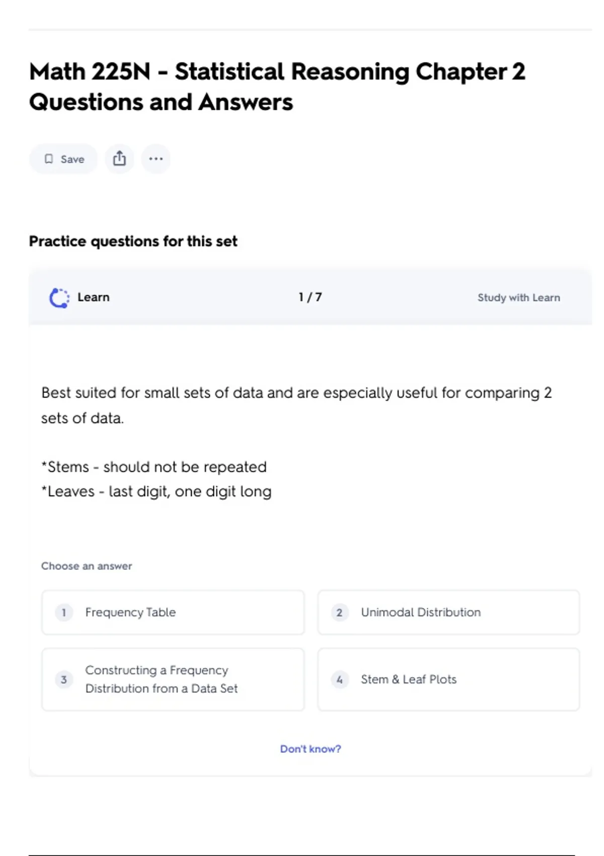 Math 225N - Statistical Reasoning Chapter 2 Questions and Answers