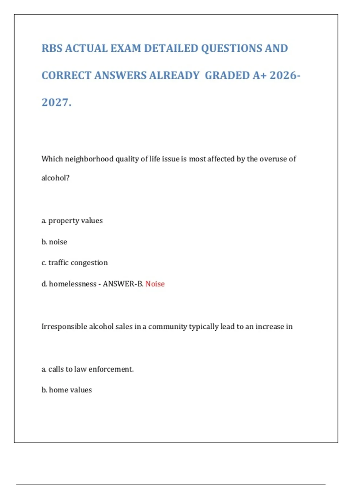 This comprehensive resource contains actual RBS (Responsible Beverage Service) exam questions and correct answers for , already graded A+. Covering key topics such as alcohol laws, signs of intoxication, checking IDs, legal responsibilities, and safe service practices, this guide is essential for anyone preparing for the RBS certification exam. It includes detailed explanations and scenario-based questions to help servers, bartenders, and alcohol handlers understand California ABC regulations and ensure responsible alcohol service.