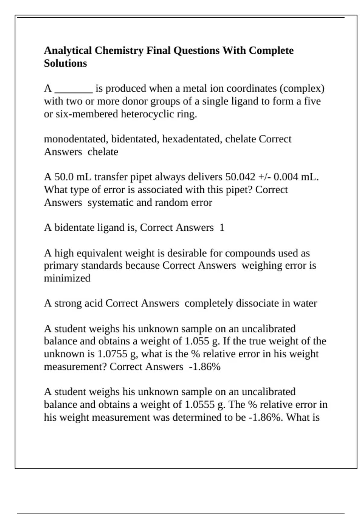 Analytical Chemistry Final Questions With Complete