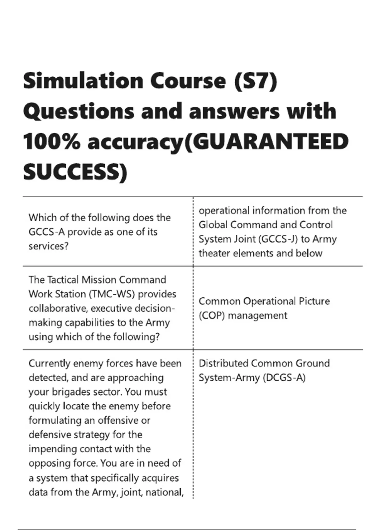 Simulation Course (S7) Questions and answers with 100- accuracy(GUARANTEED SUCCESS)
