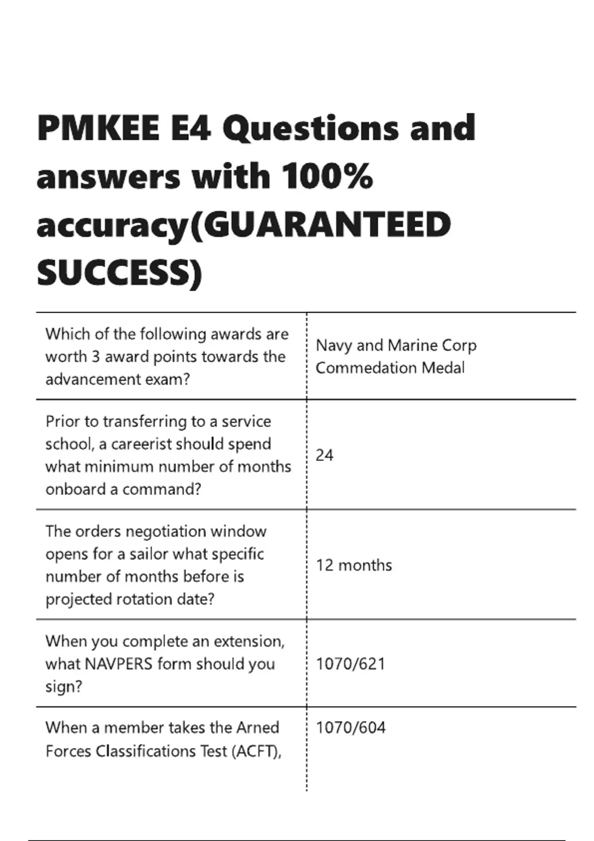 PMKEE E4 Questions and answers with 100- accuracy(GUARANTEED SUCCESS)