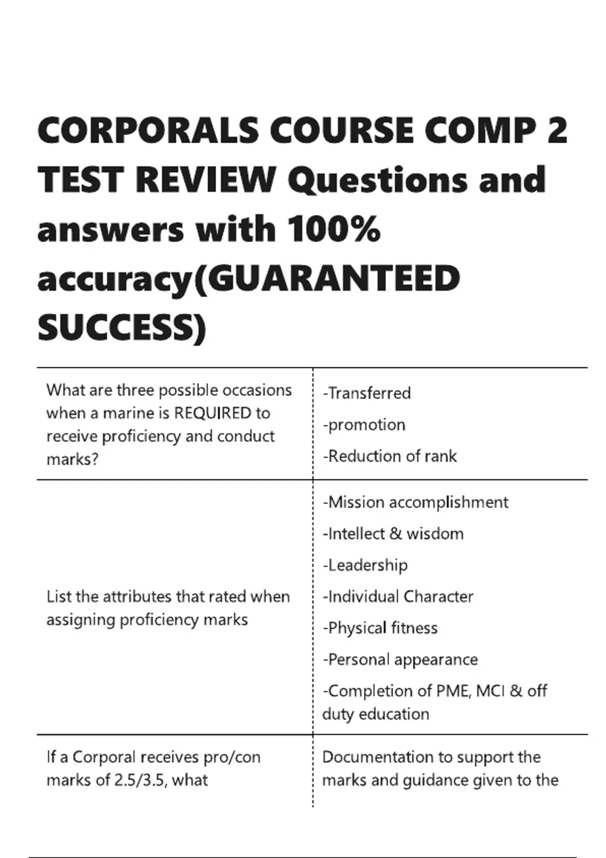 CORPORALS COURSE COMP 2 TEST REVIEW Questions and answers