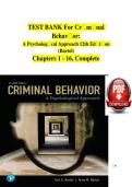 Test bank for Criminal Behavior: A Psychological Approach (12th Edition) covering Chapters 1–16, with accurate and verified answers for psychology and criminology exam preparation.