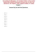Accounting for Managers, 1st Canadian Edition 1e Paul Collier Sandy Kizan Eckhard Schumann (Answer Key For Self-Test Questions, All Chapters, 100% Original Verified, A+ Grade)