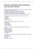 Biology 110 Multiple Choice Questions with Accurate Answers
