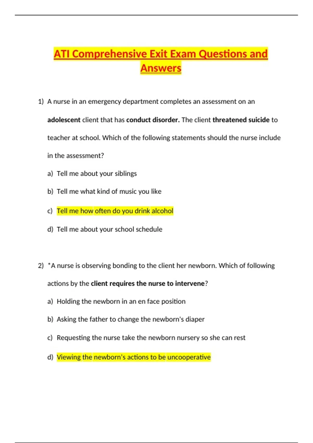 ATI Comprehensive Exit Exam Questions and