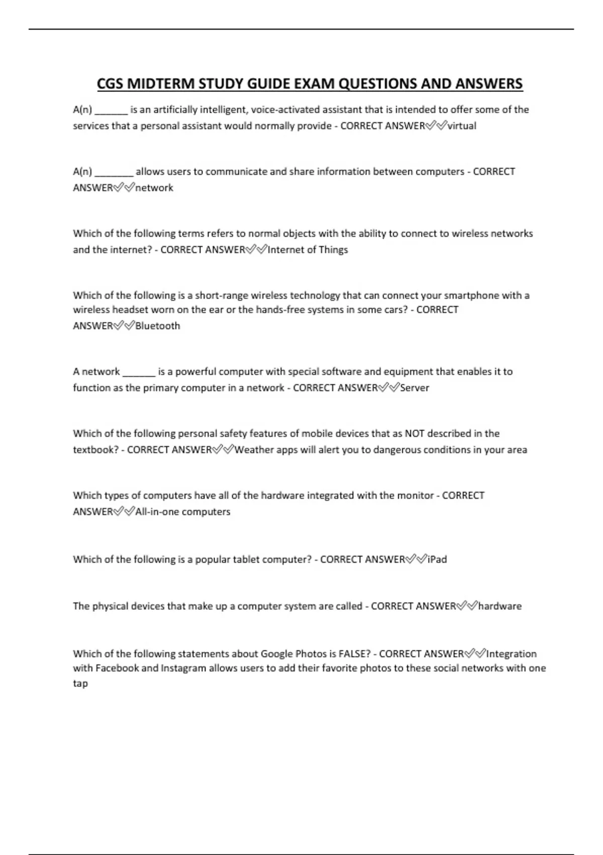 CGS MIDTERM STUDY GUIDE EXAM QUESTIONS AND ANSWERS