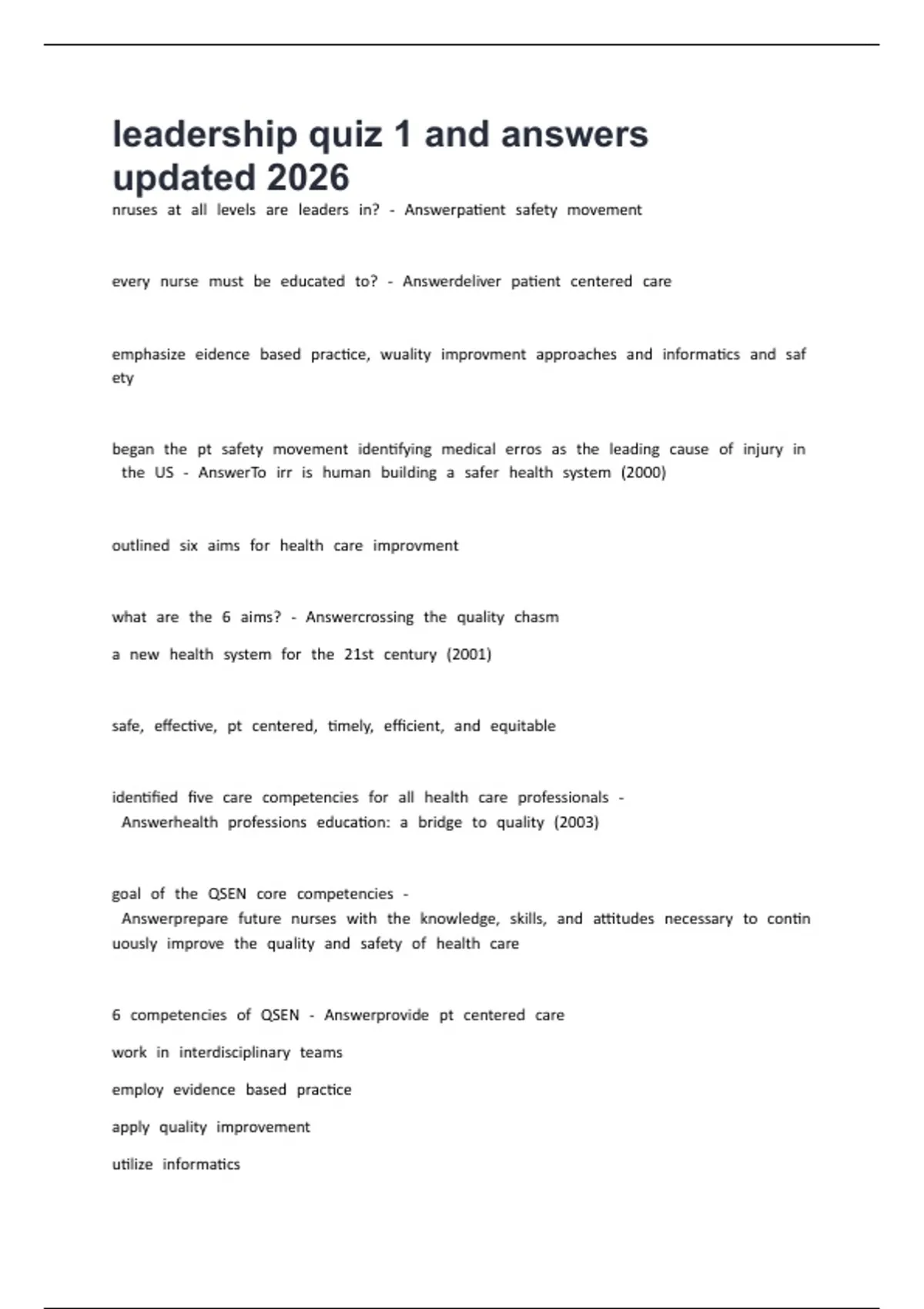 Leadership latest 2026 | 2027 package deal Questions and Answers All Verified