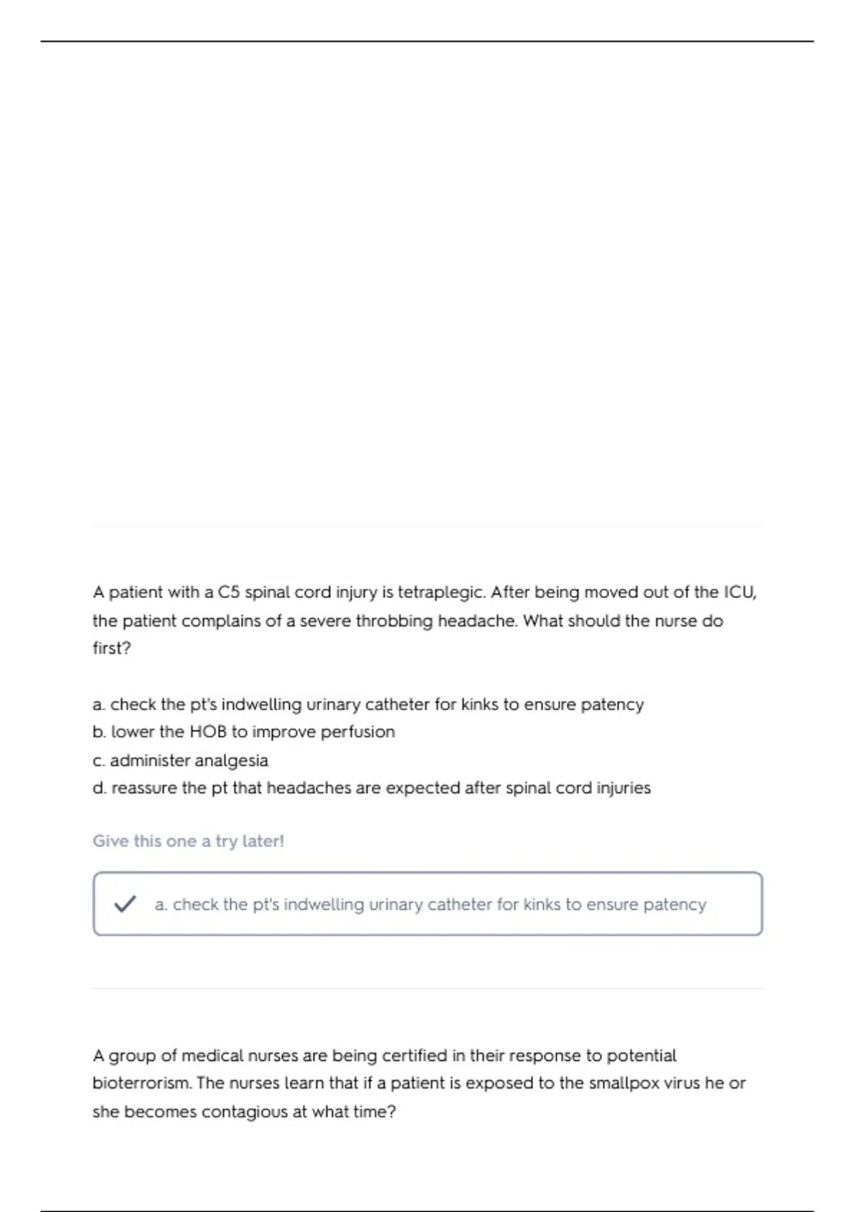d. reassure the pt that headaches are expected after spinal cord injuries
