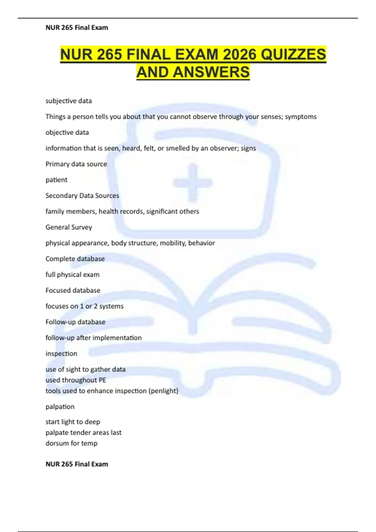 NUR 265 Final Exam