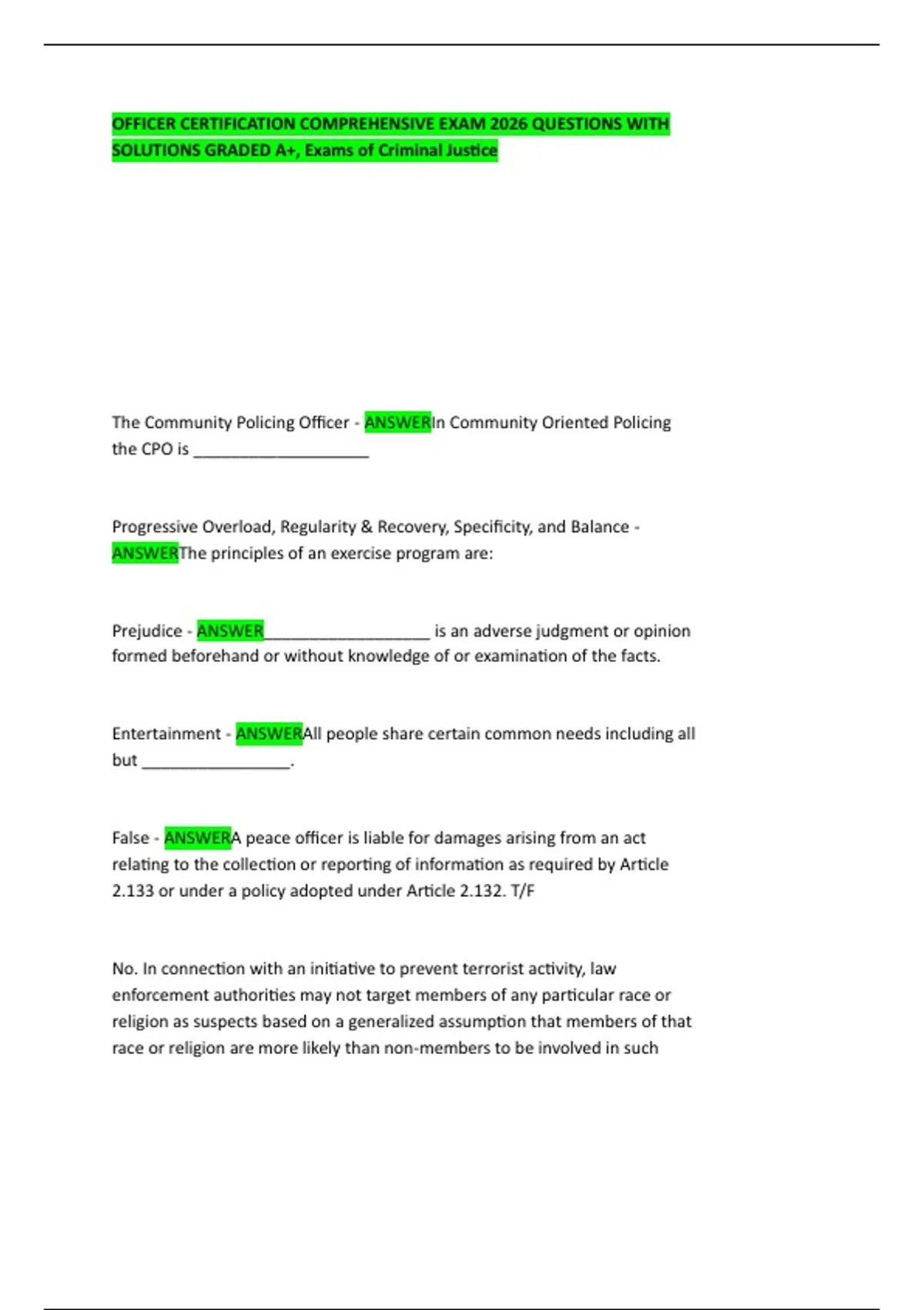 SOLUTIONS GRADED A+, Exams of Criminal Justice