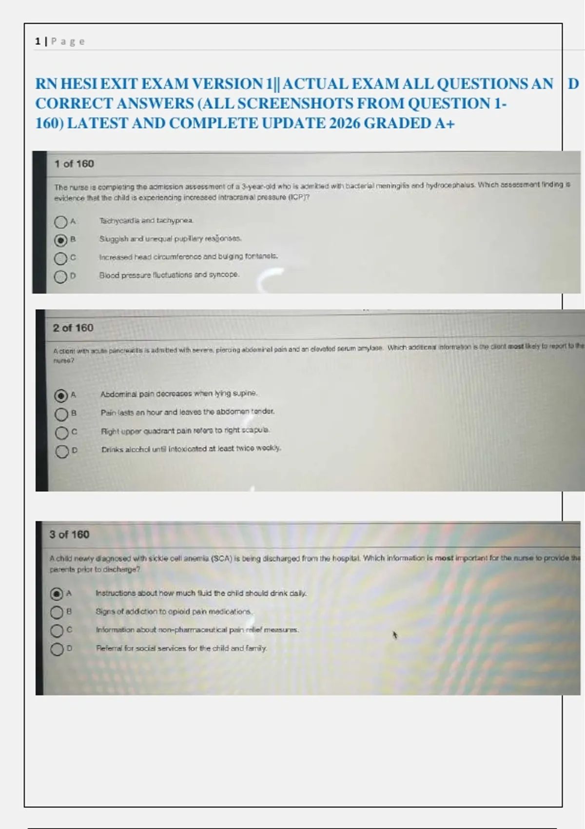 RN HESI EXIT EXAM VERSION 1|| ACTUAL EXAM ALL QUESTIONS AN D