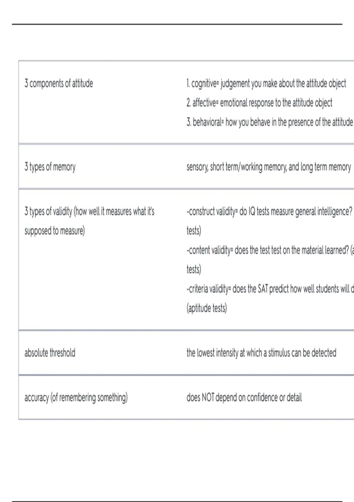 -content validity= does the test test on the material learned? (a