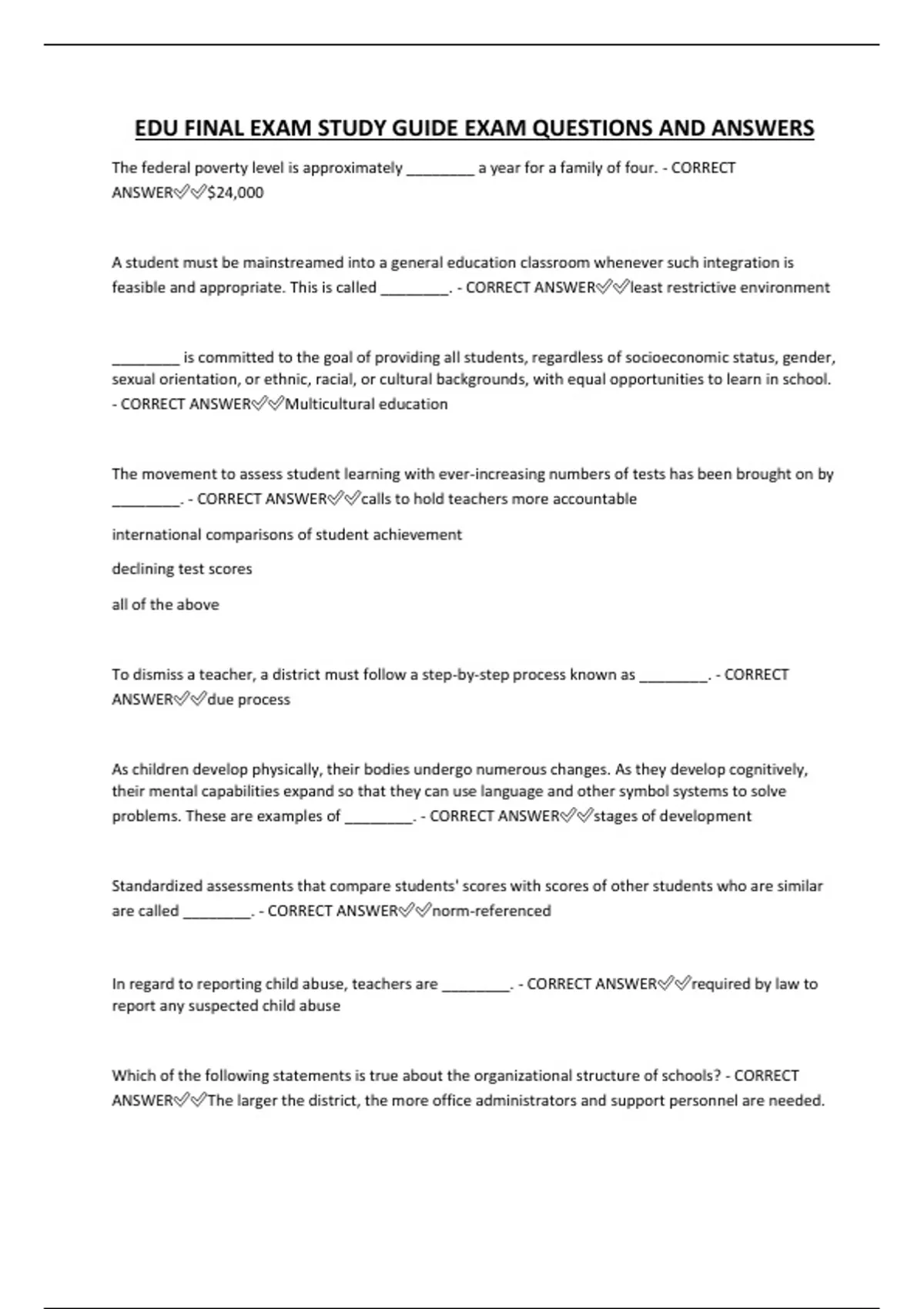 EDU FINAL EXAM STUDY GUIDE EXAM QUESTIONS AND ANSWERS