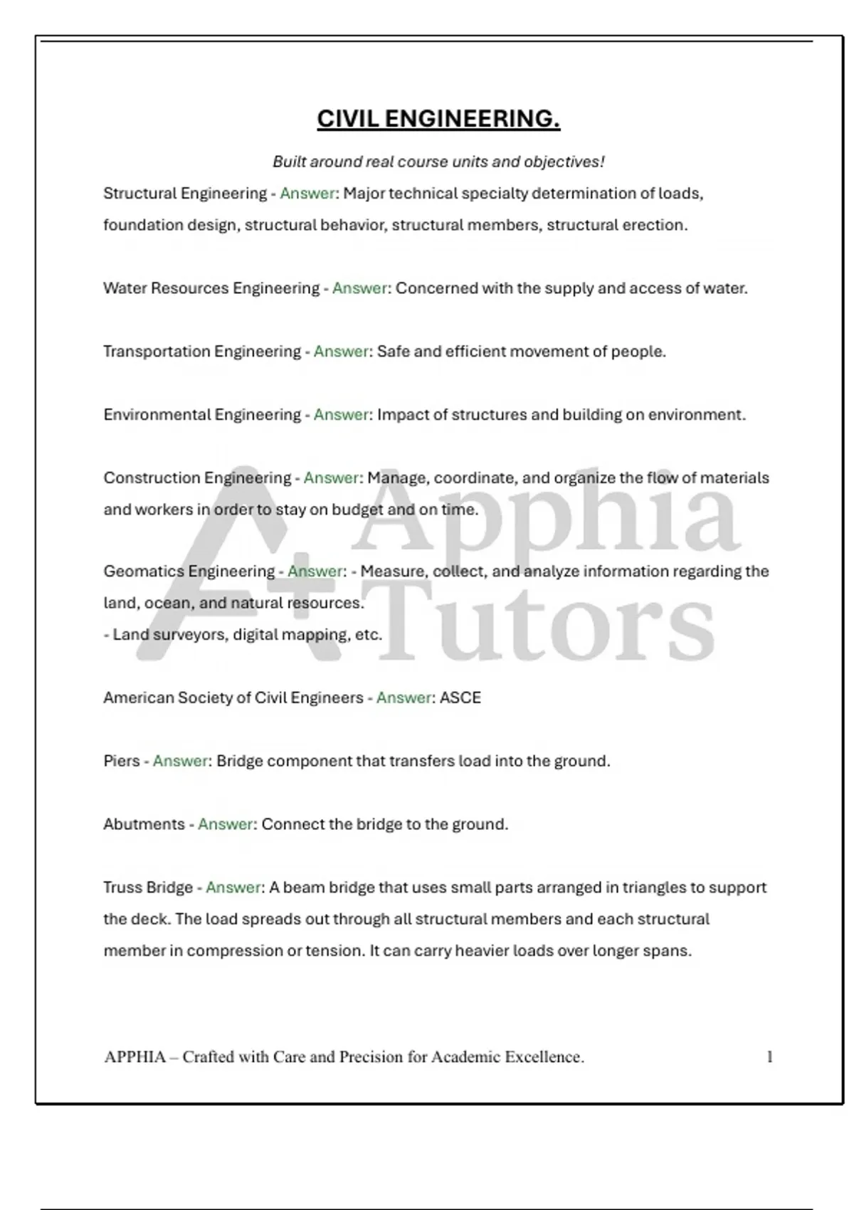 CIVIL ENGINEERING. Built around real course units and objectives!