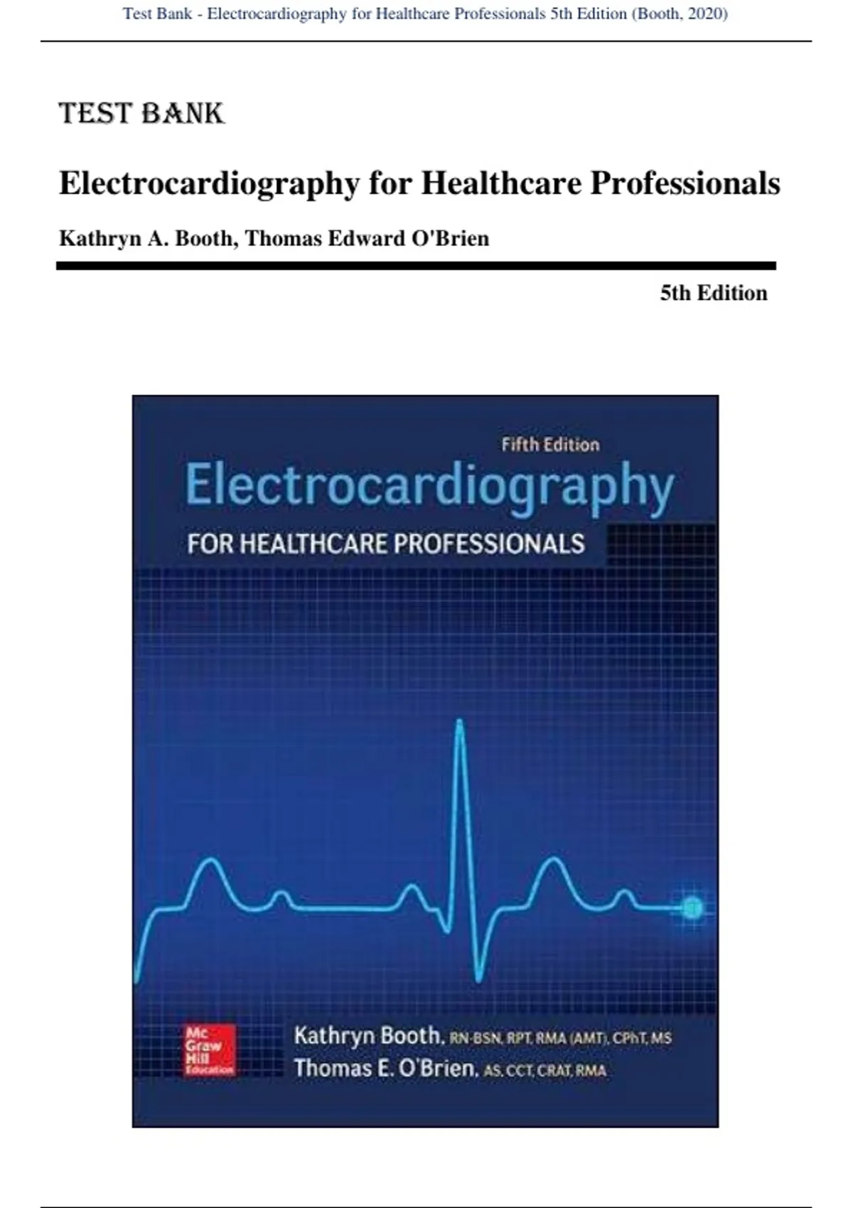Test Bank for Electrocardiography for Healthcare Professionals 5th Edition by Kathryn A. Booth, Thomas Edward O'Brien This is not a book, but a test bank is a collection of pre-prepared exam questions and answers, designed to help teachers assess students' knowledge and understanding of course material.