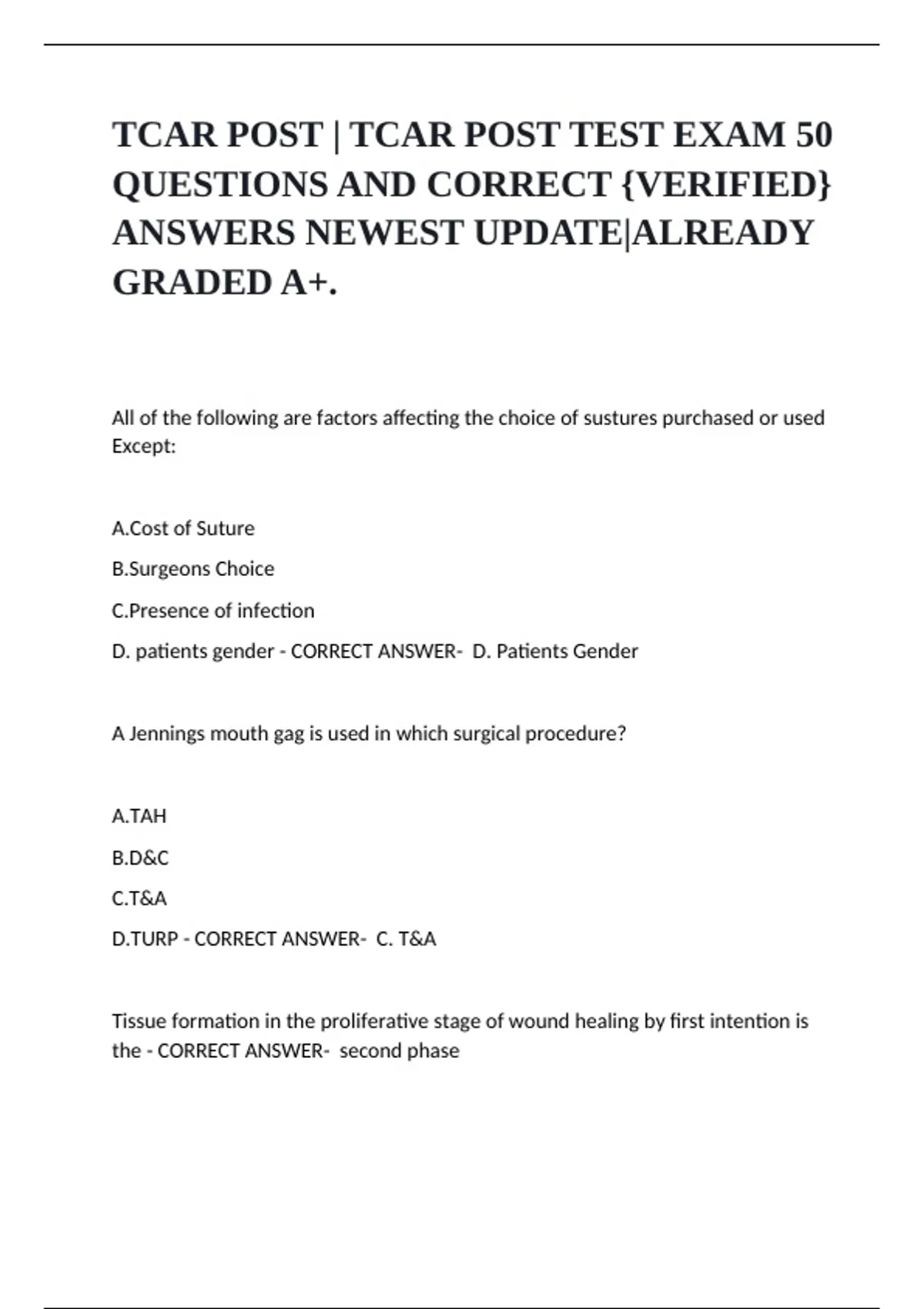 D.TURP - CORRECT ANSWER- C. T&A