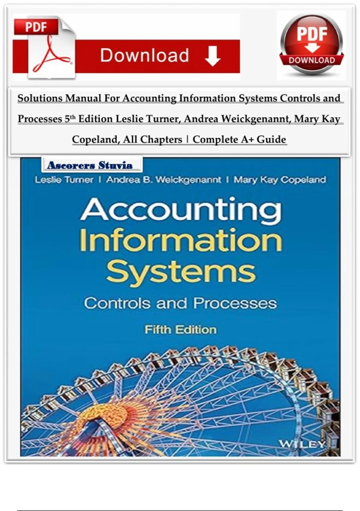 Solutions Manual For Accounting Information Systems Controls and Processes 5th Edition Leslie Turner, Andrea Weickgenannt, Mary Kay Copeland, All Chapters | Complete A+ Guide - Pdf File.