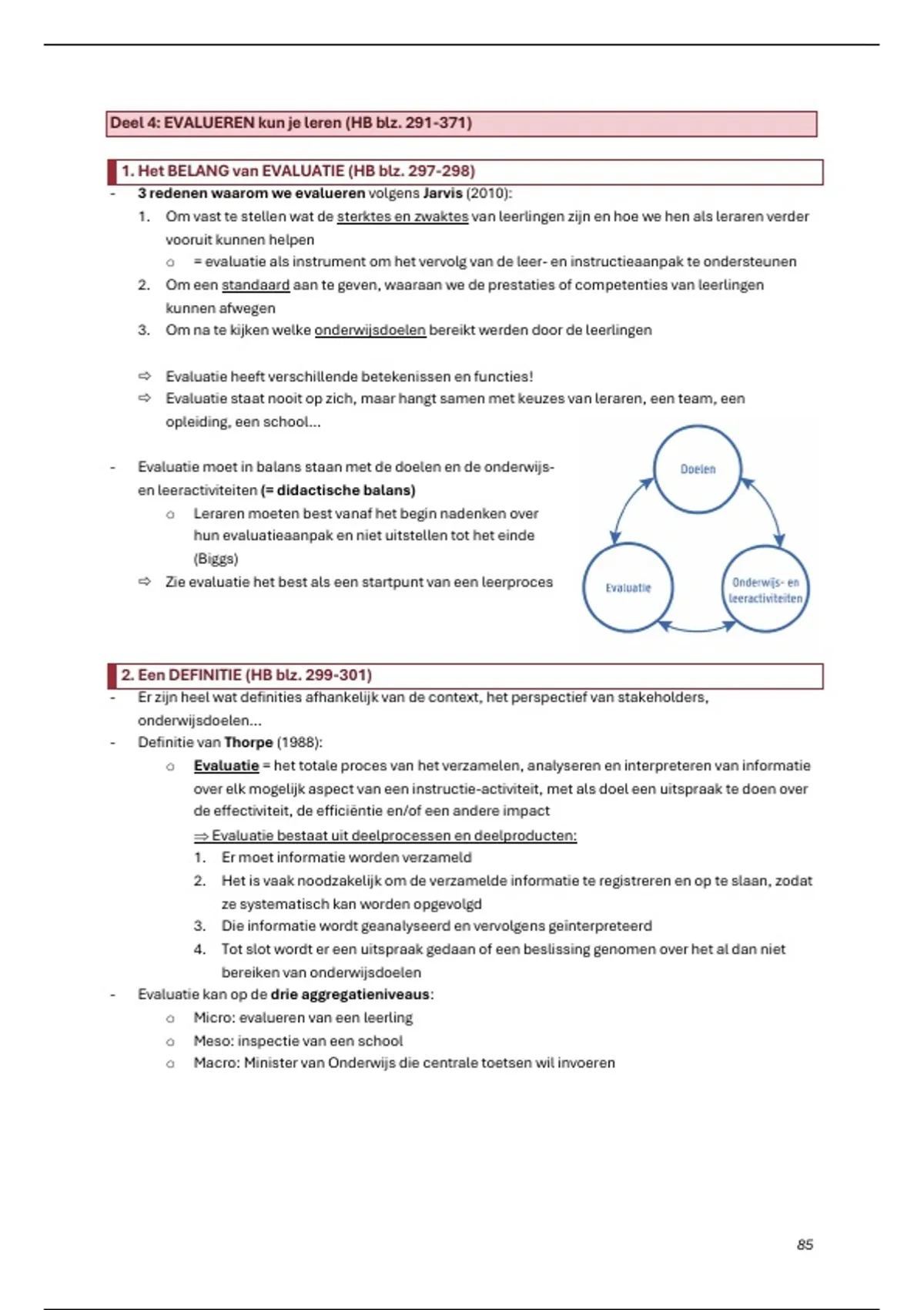 1. Het BELANG van EVALUATIE (HB blz. 297-298)