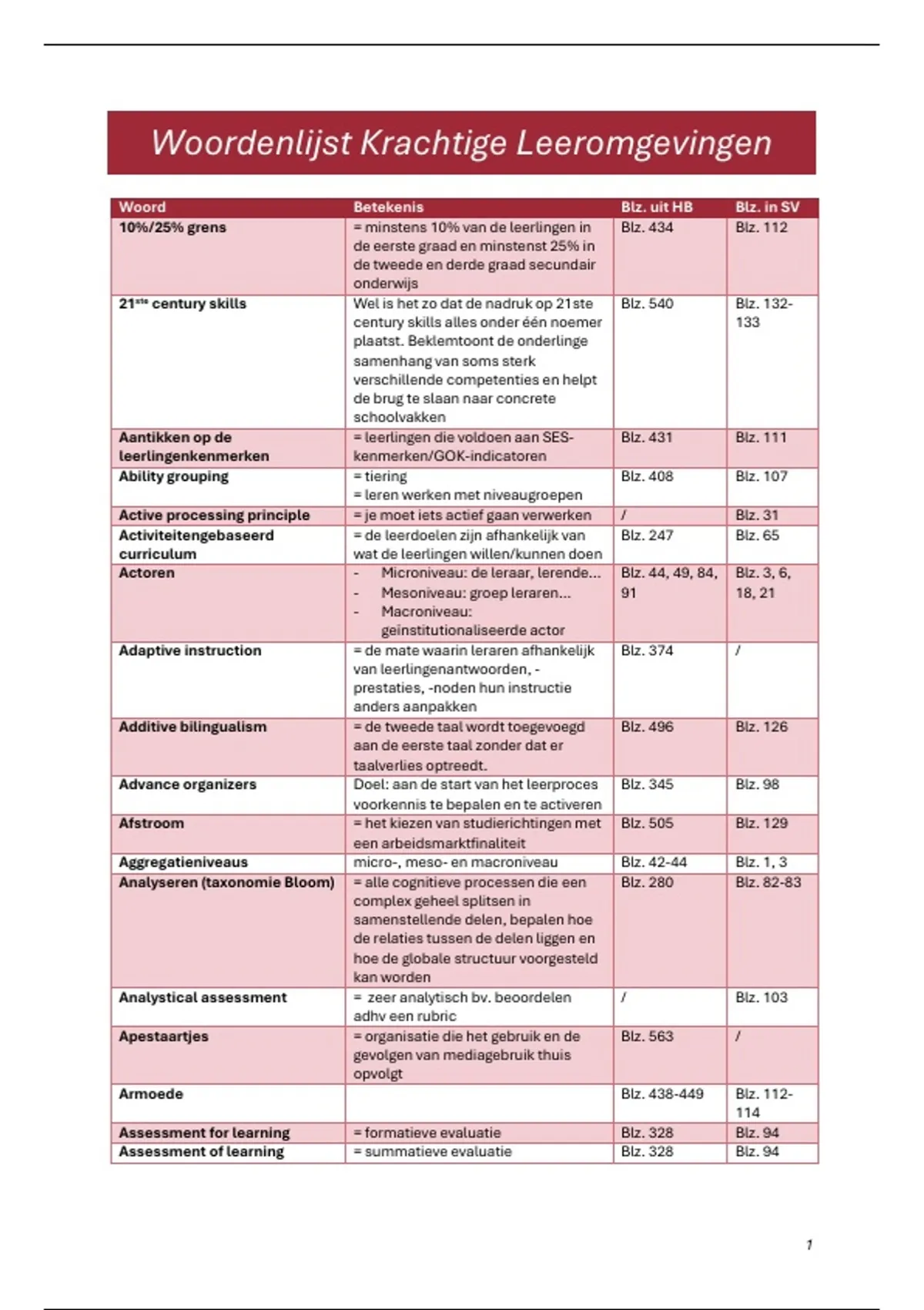 Woordenlijst Krachtige Leeromgevingen