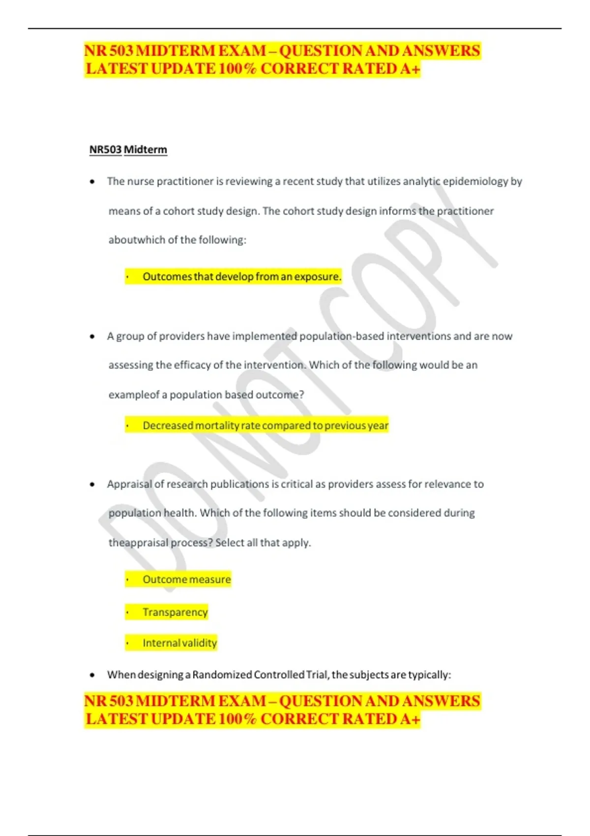 NR 503 MIDTERM EXAM – QUESTION AND ANSWERS