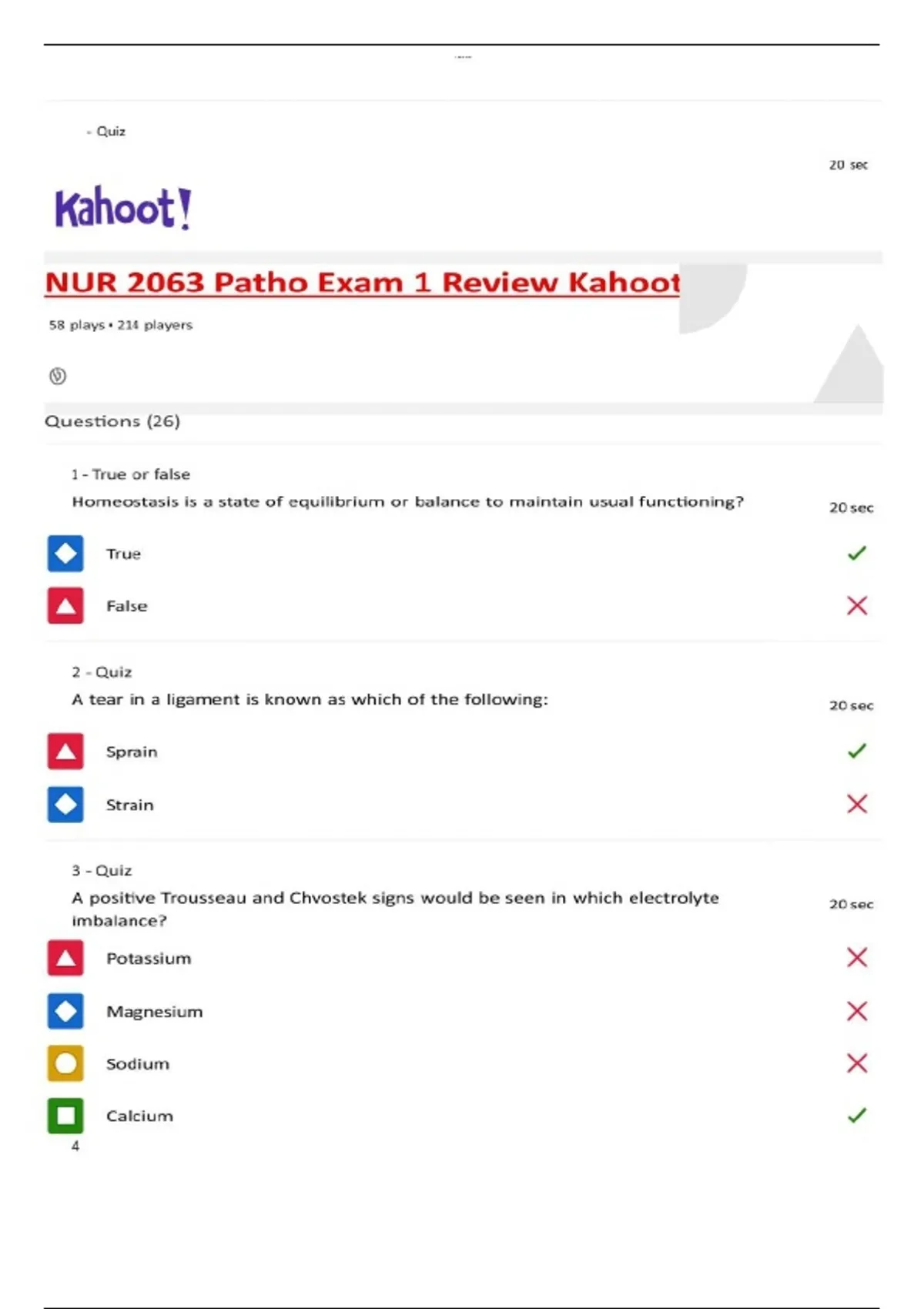 NUR 2063 Patho Exam 1 Review Kahoot: Key Concepts & Quiz Questions and Correct Answers | New Update 2026 | Rasmussen University