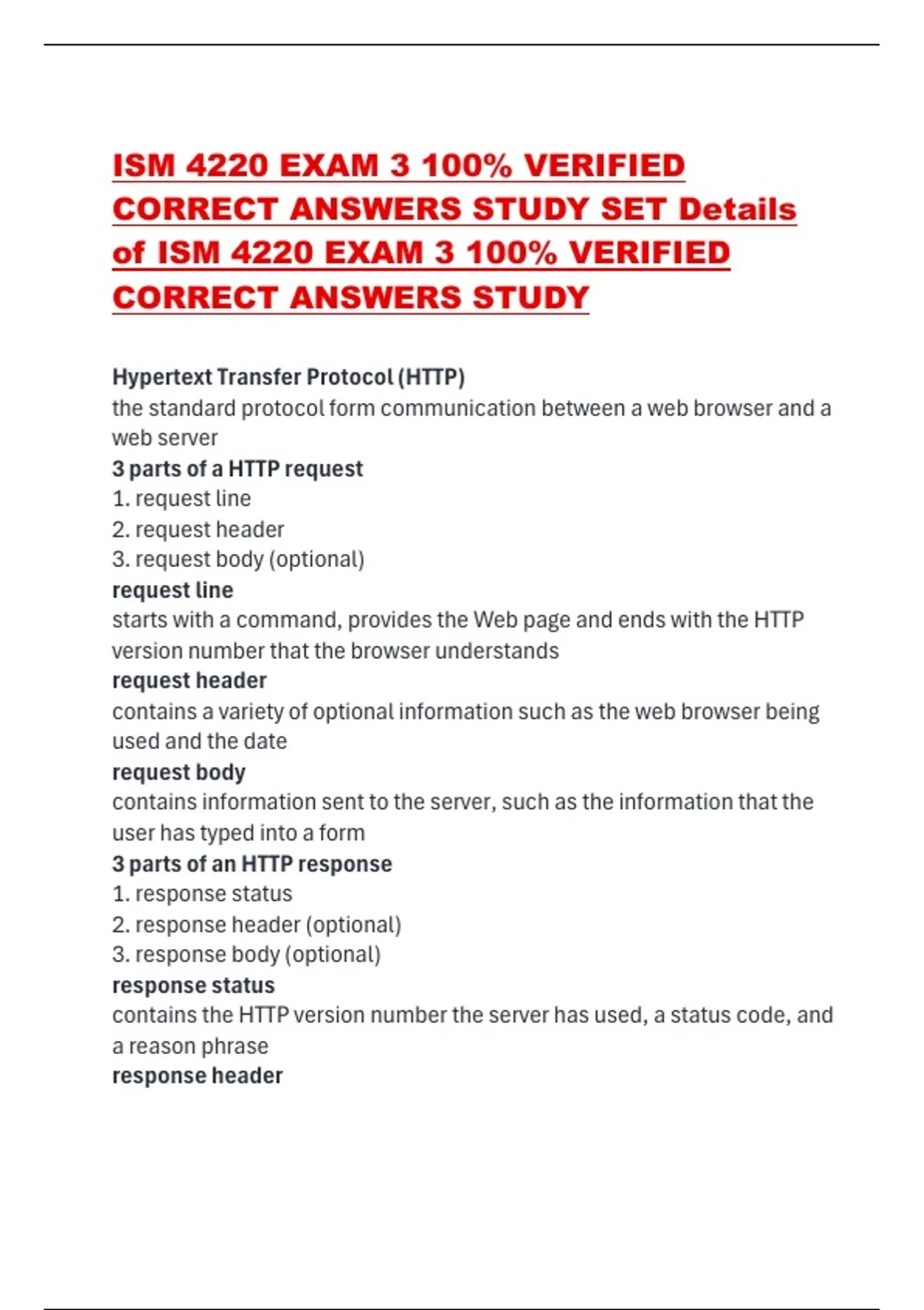 ISM 4220 EXAM 3 100% VERIFIED CORRECT ANSWERS STUDY SET Details of ISM 4220 EXAM 3 100% VERIFIED CORRECT ANSWERS STUDY