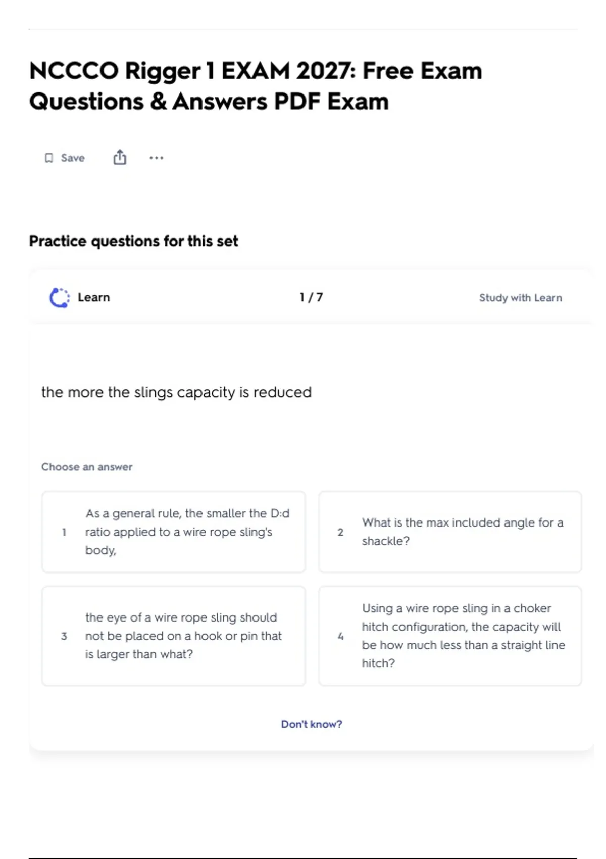 NCCCO Rigger 1 EXAM 2027: Free Exam