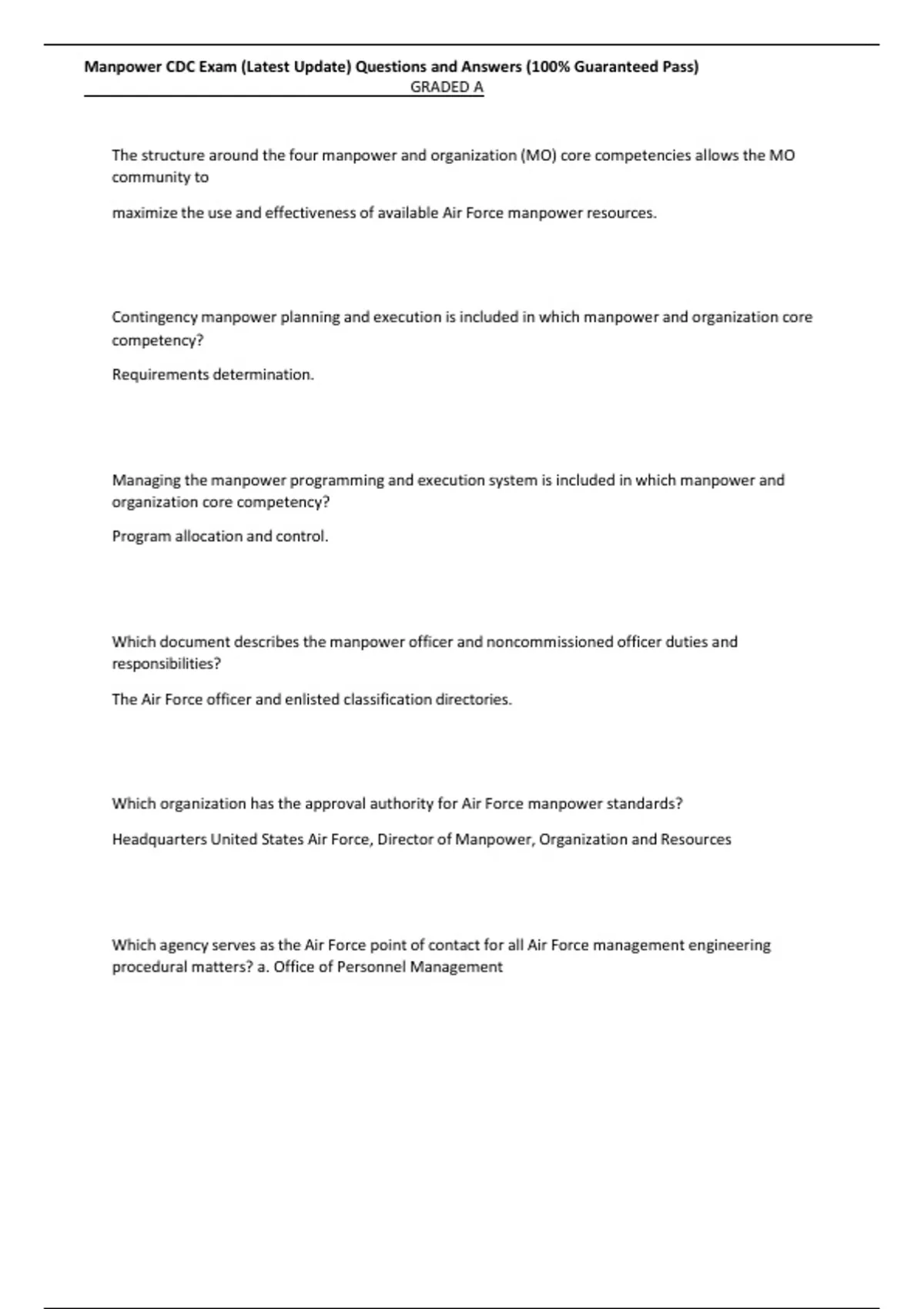 ,Manpower CDC Exam (Latest Update) Questions and Answers (100% Guaranteed Pass)