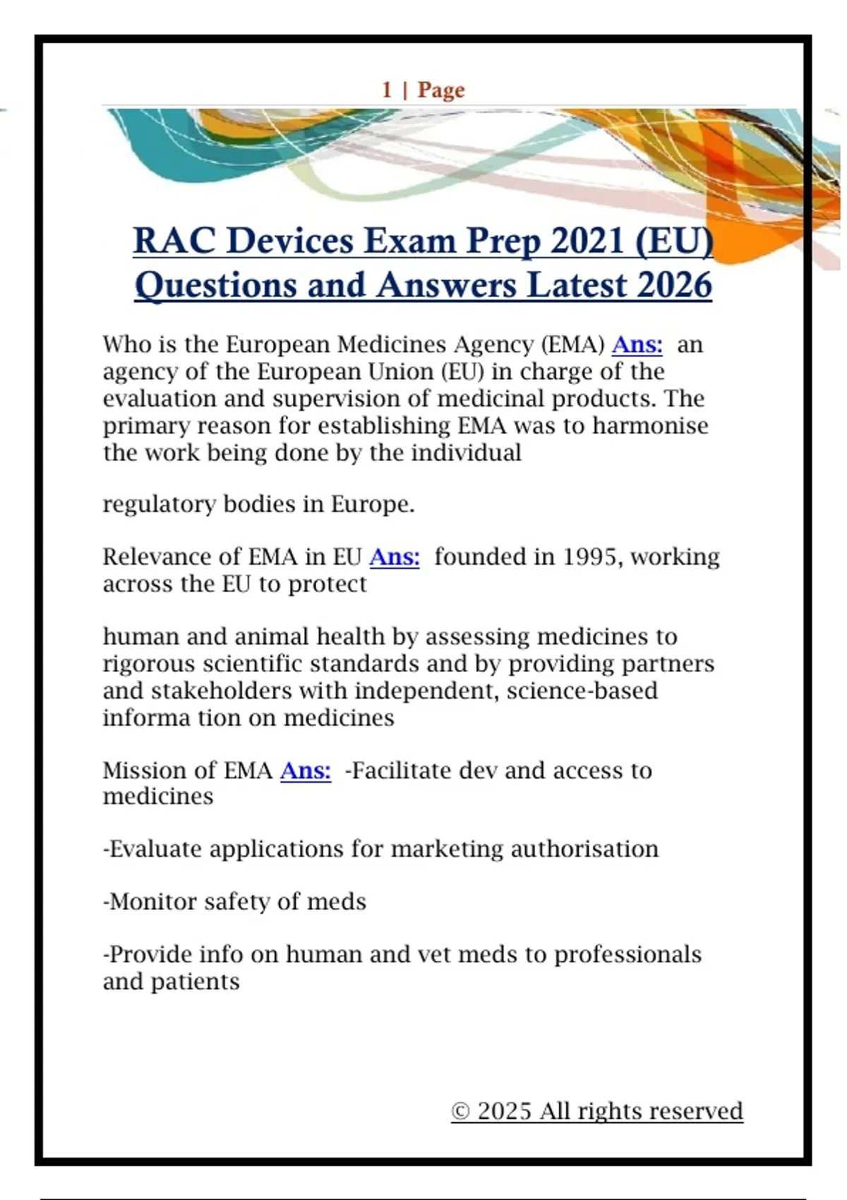 RAC Devices Exam Prep 2021 (EU) Questions and Answers Latest 2026