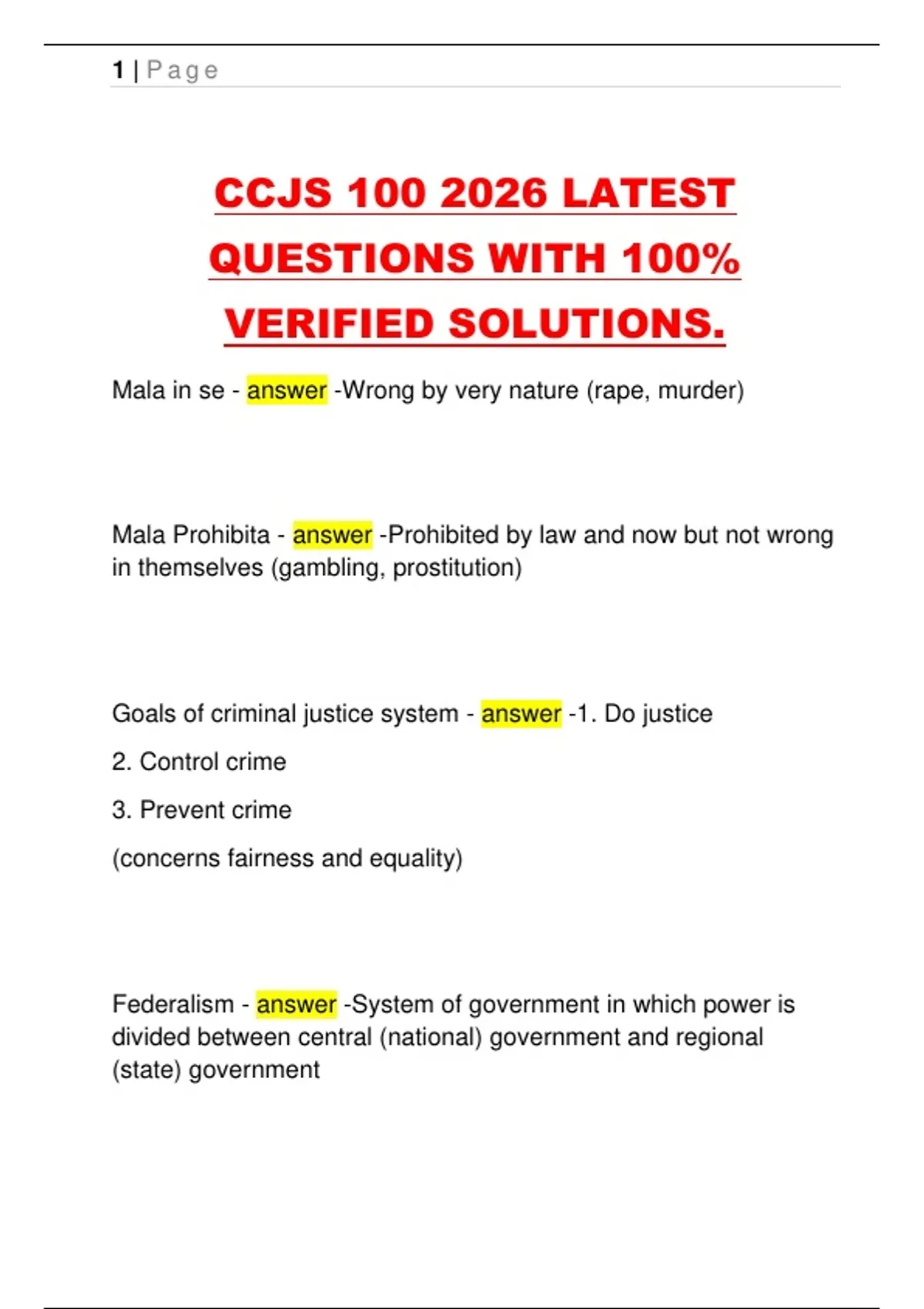 CCJS 100 2026 LATEST QUESTIONS WITH 100% VERIFIED SOLUTIONS.