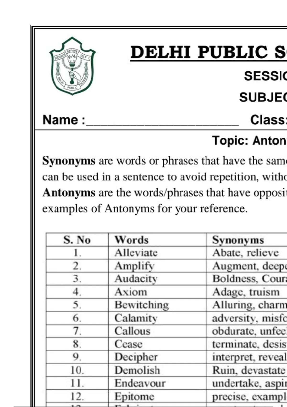 Lecture notes of 1 pages for the course English at Second year / 8th Grade (A document)