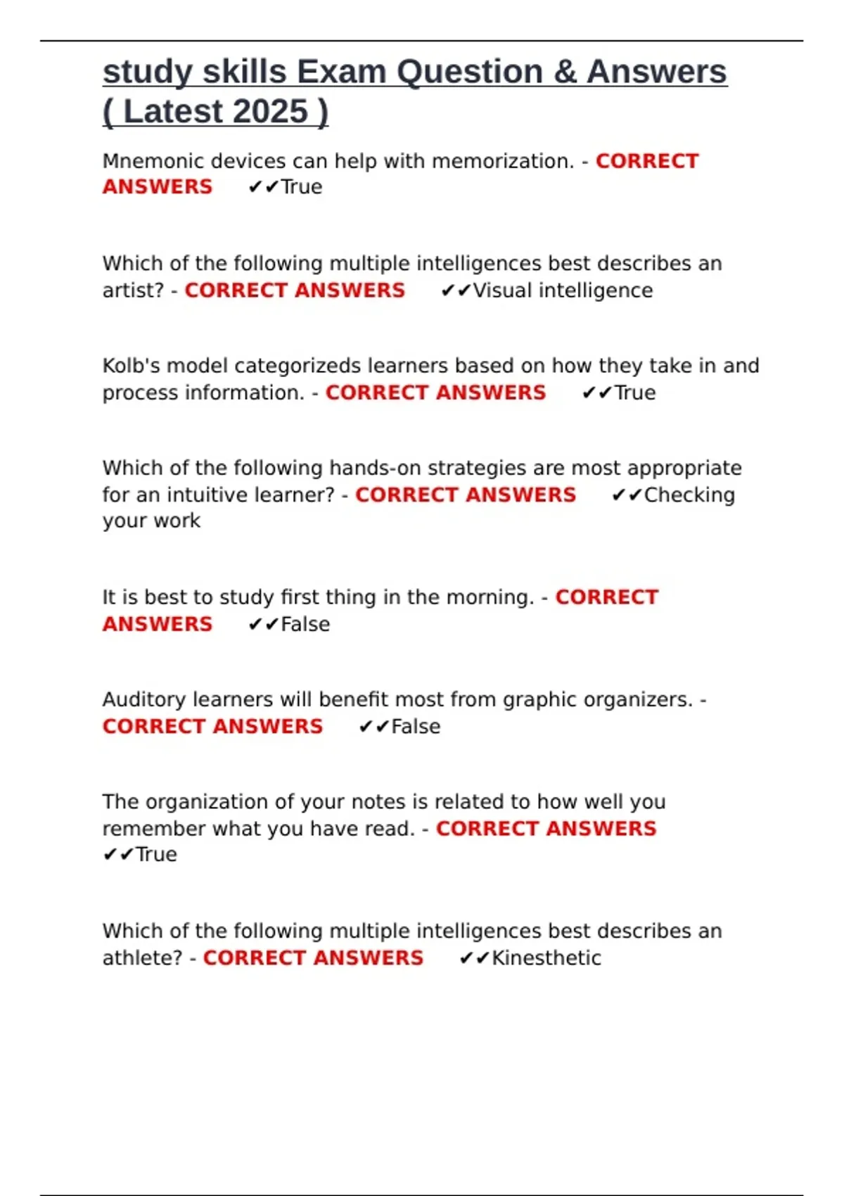 study skills Exam Question & Answers ( Latest 2025 ).docx
