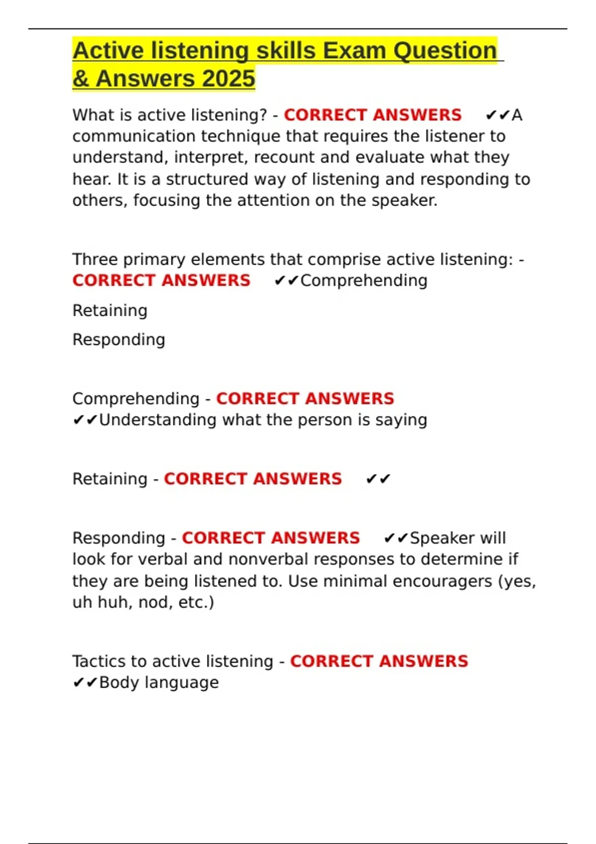 Tactics to active listening - CORRECT ANSWERS