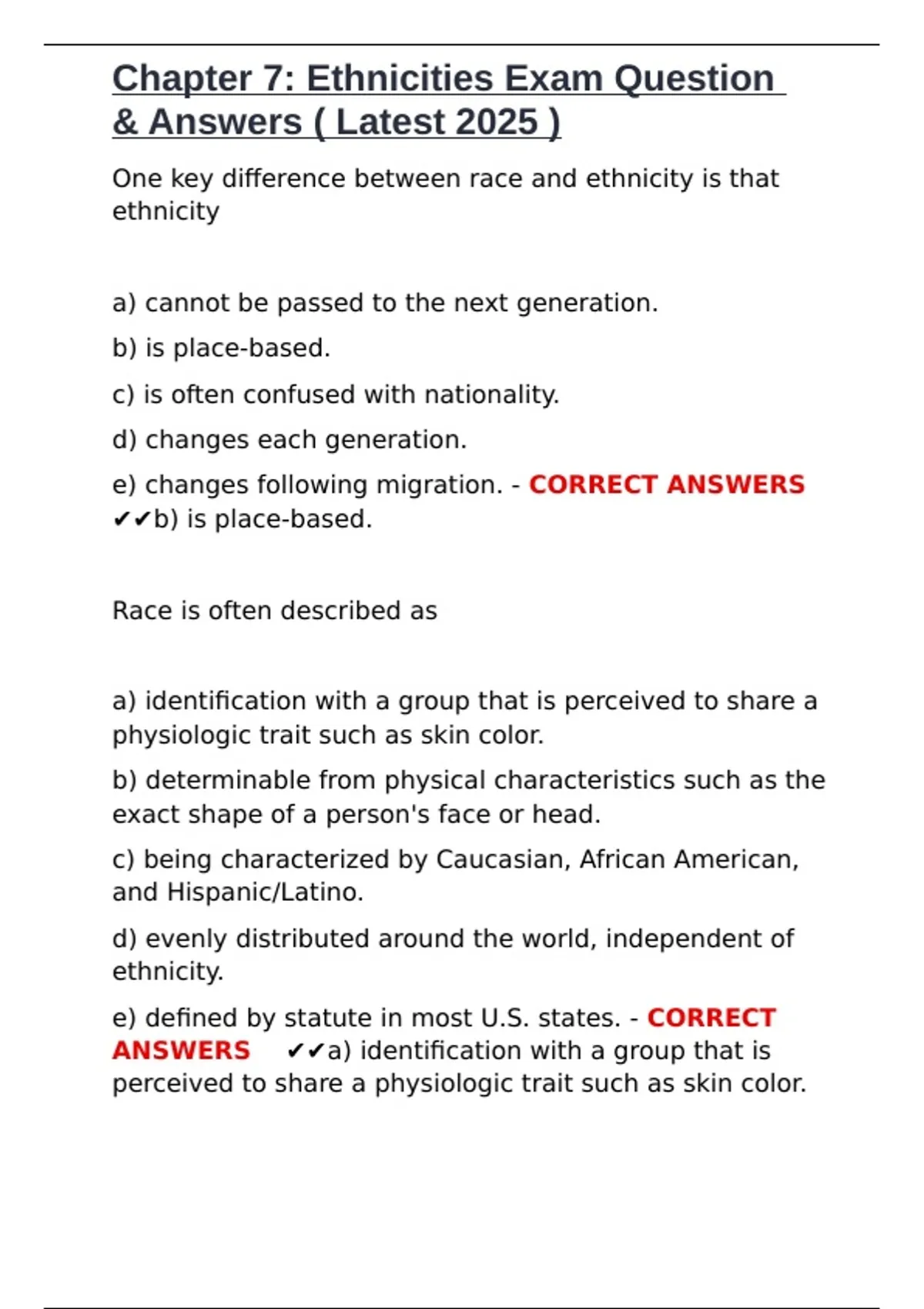 Chapter 7 Ethnicities Exam Question & Answers ( Latest 2025 ).docx